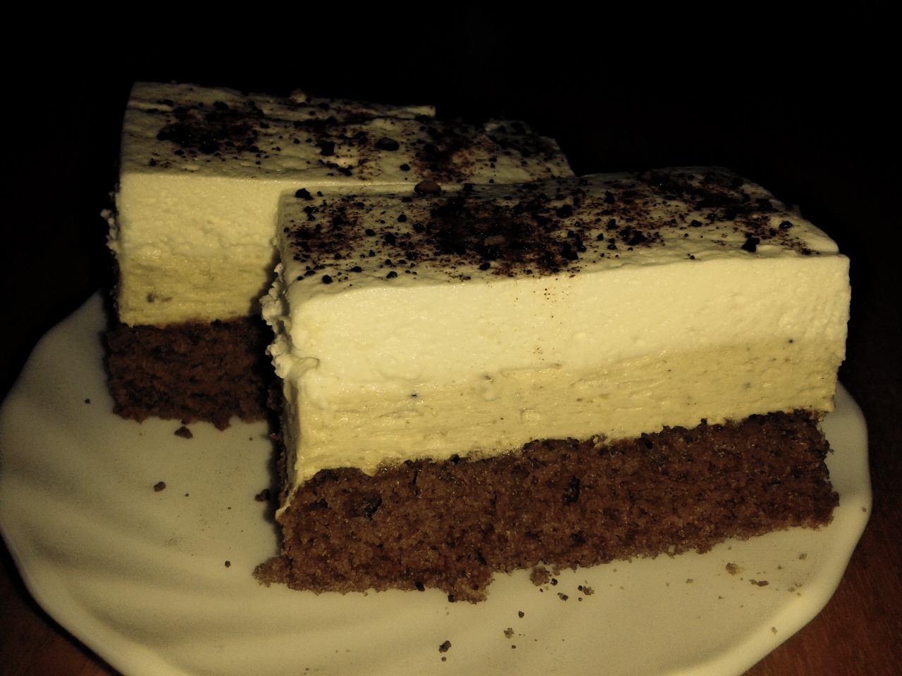 - Celé vajcia si vymiešame s cukrom do penista a pridávame polohrubú múku zmiešanú s kakaom a práškom do pečiva.